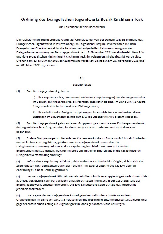 Ordnung des Evangelischen Jugendwerks Bezirk Kirchheim